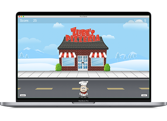 Catch as many pizzas and coins as you can while avoiding the bombs. The more points you score the closer you get to the delivery location.